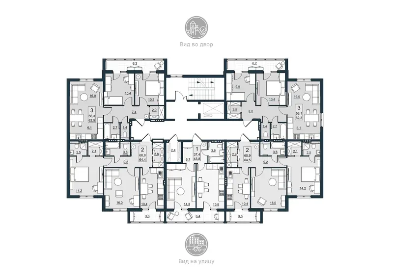| Общая площадь | 62.1 м² |