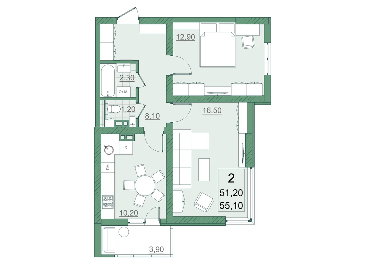 Комнат: 2