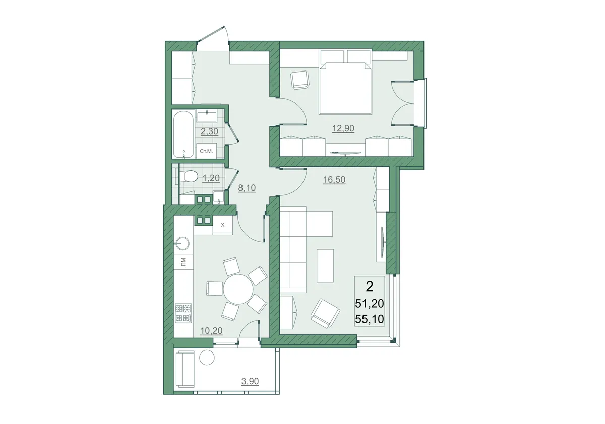 51.2 м²
