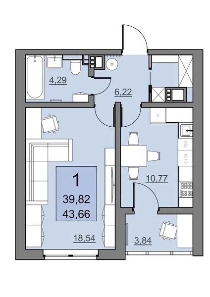 Комнат: 1