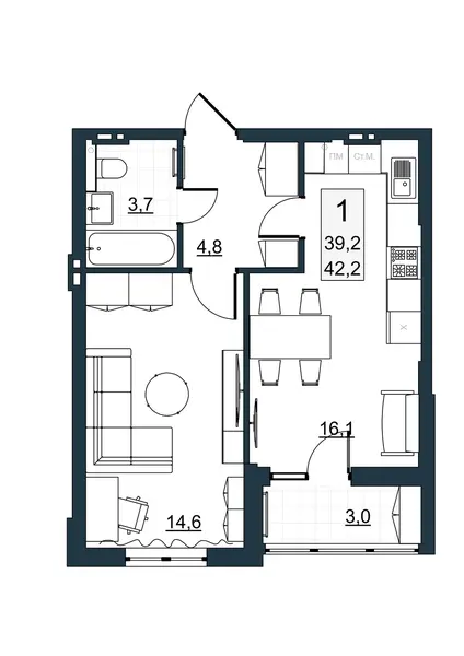 | Общая площадь | 39.2 м² |