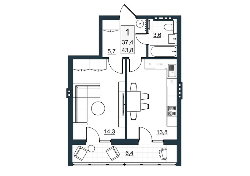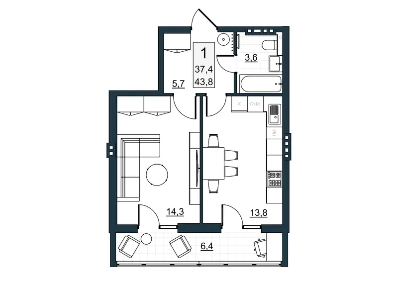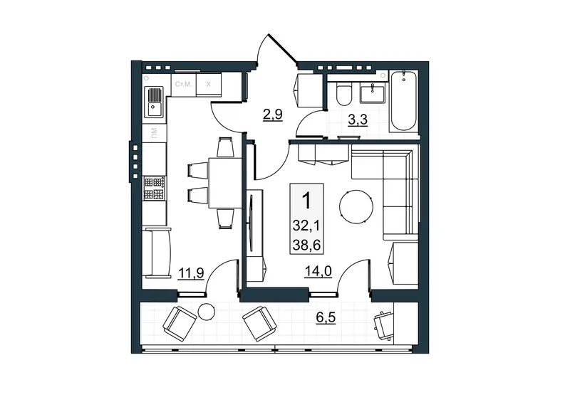 | Общая площадь | 32.1 м² |