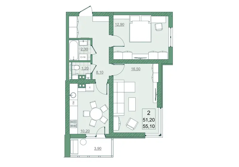 51.2 м²