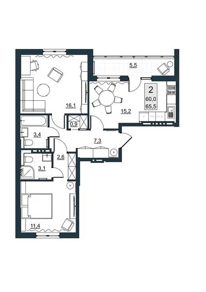 | Комнат | 2 |