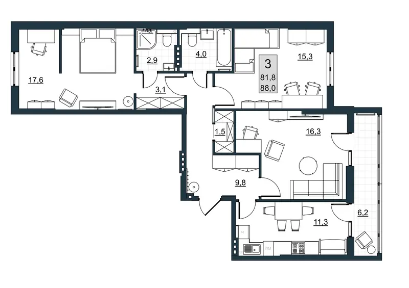 | Общая площадь | 81.8 м² |