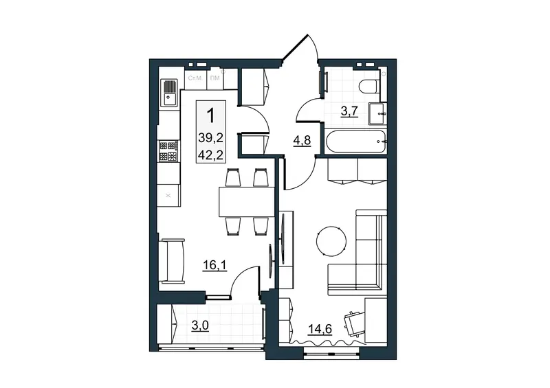 | Общая площадь | 39.2 м² |