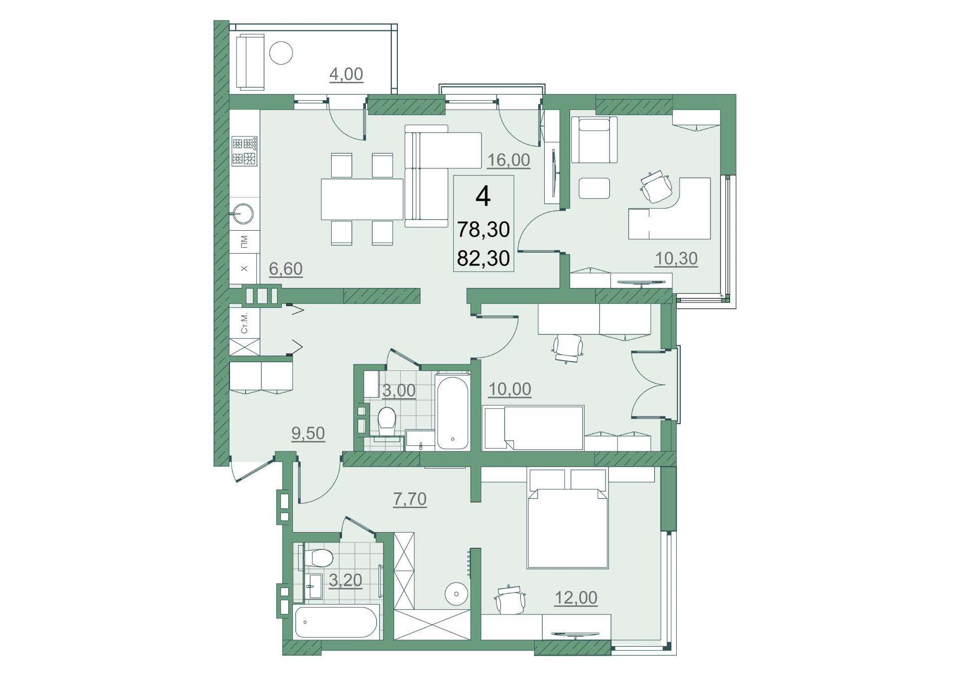 78.3 м²