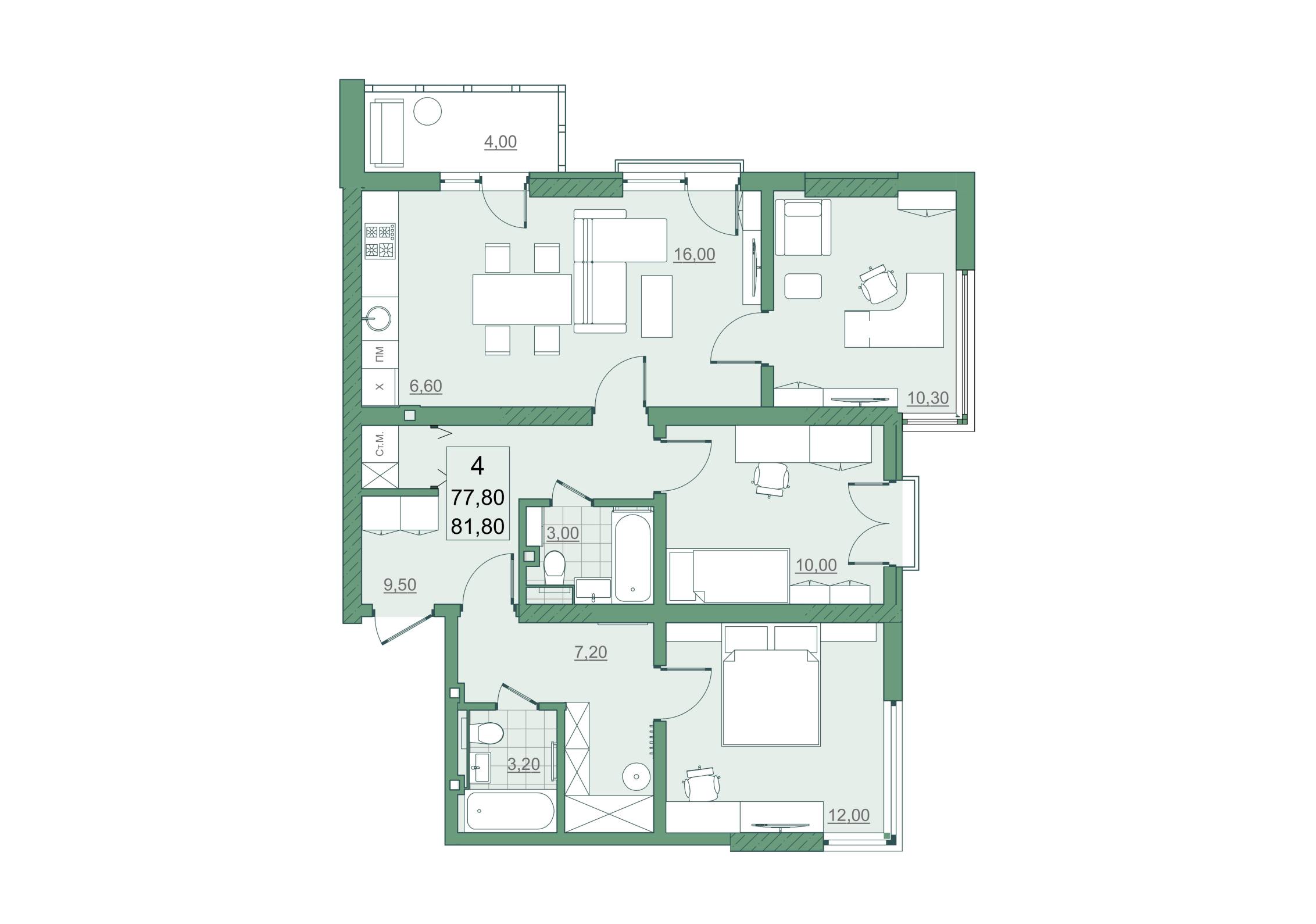 Комнат: 4