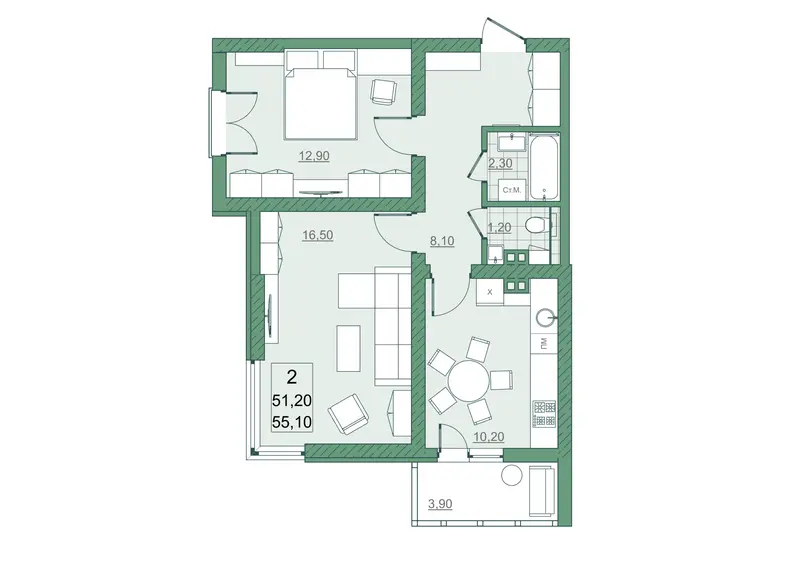 Комнат: 2 51.2 м² Этаж: 17/22
